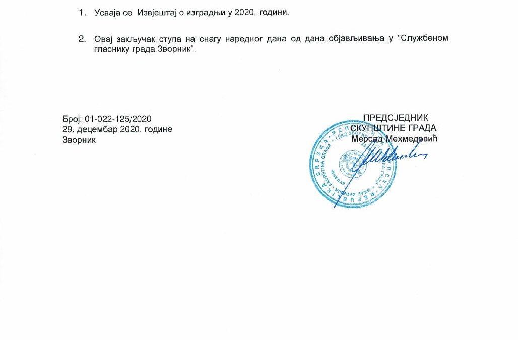 Извјештај о изградњи у 2020. години