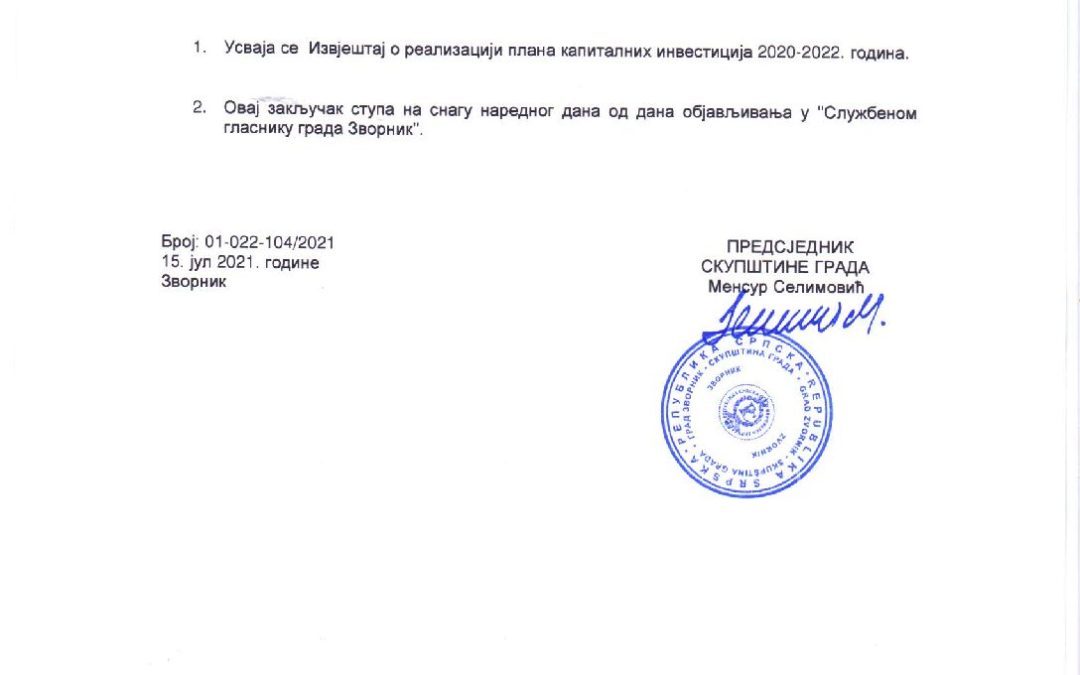Извјештај о реализацији Плана капиталних инвестиција 2020-2022 године