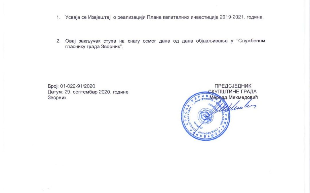 Извјештај реализацији Плана капиталних инвестиција 2019-2021 године