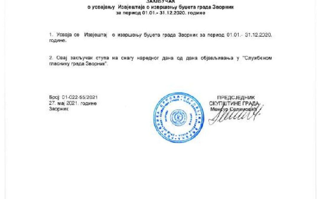 Извјештај о извршењу буџета Града Зворник за период 01.01.-31.12.2020. године_compressed jun 17, 2021