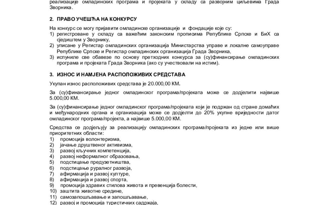 Конкурс за (су)финансирање омладинских програма и пројеката