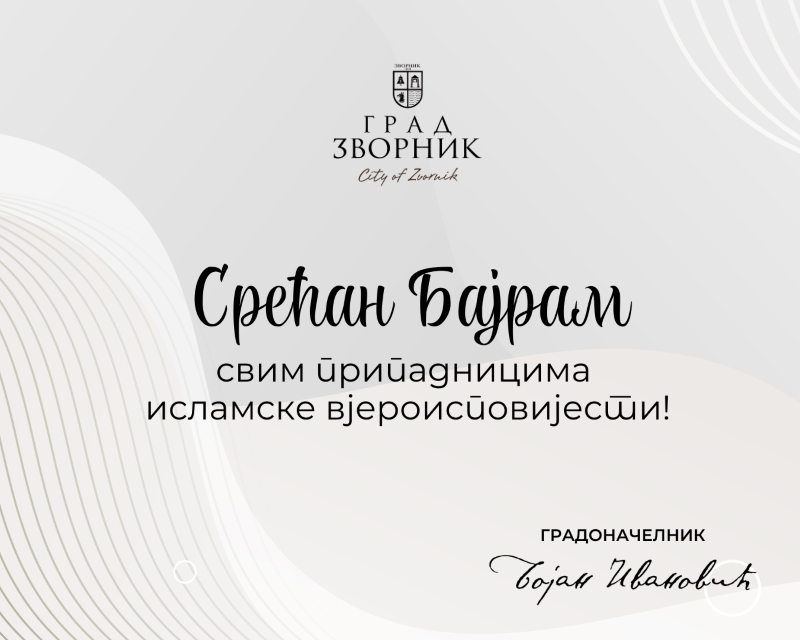 Данас 20. марта, вјерници исламске вјероисповијести, након мјесеца поста, обиљежавају Рамазански бајрам. Тим поводом градоначелник Зворника Бојан Ивановић упутио је честитку и пожелио свим суграђанима који славе овај празник здравље, радост и благостање.