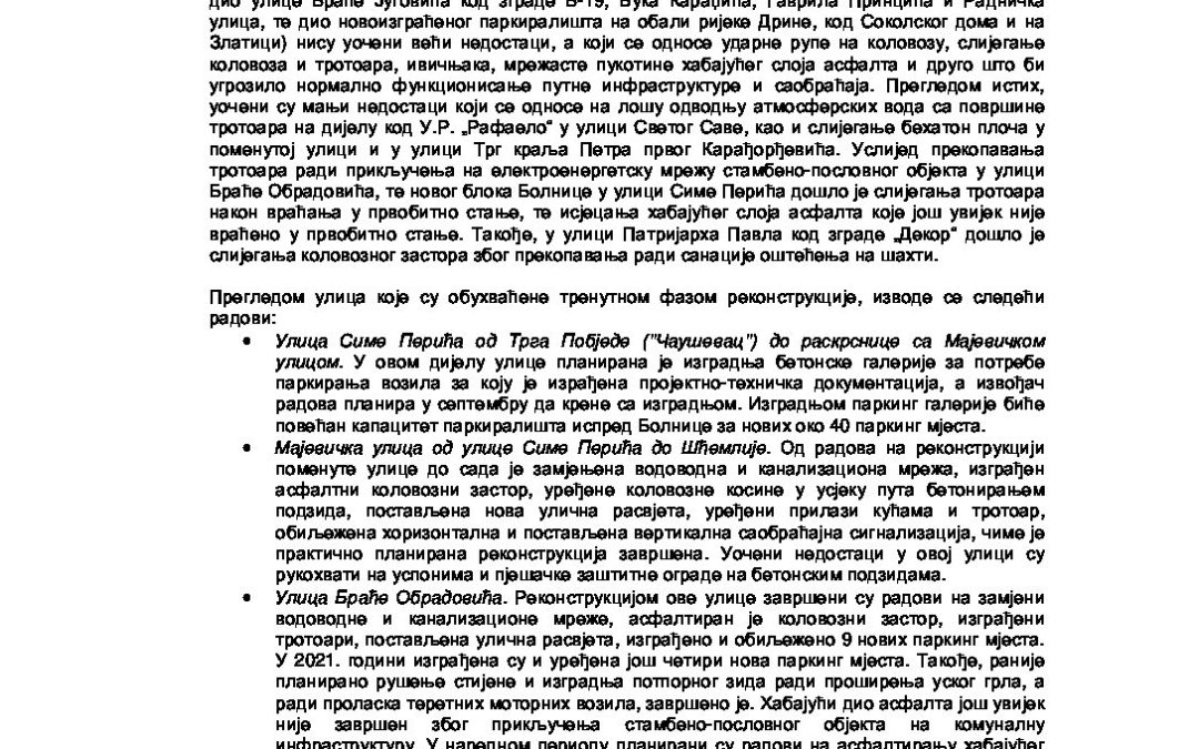 Информација о стању улица, тротоара и саобраћајне сигнализације у граду