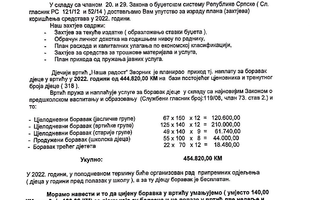 План рада ЈПВОУ Дјечији вртић Наша радост Зворник