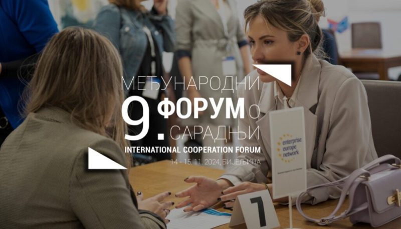 Развојна агенција Републике Српске и Развојна агенција Србије, у оквиру Европске мреже предузетништва, организују 9. Међународни форум о сарадњи који ће бити одржан 14. и 15. новембра 2024. године у Бијељини. Регистрација за учешће отворена је најкасније до 13. новембра 2024. године путем линка: https://9th-international-cooperation-forum-2024.talkb2b.net/
