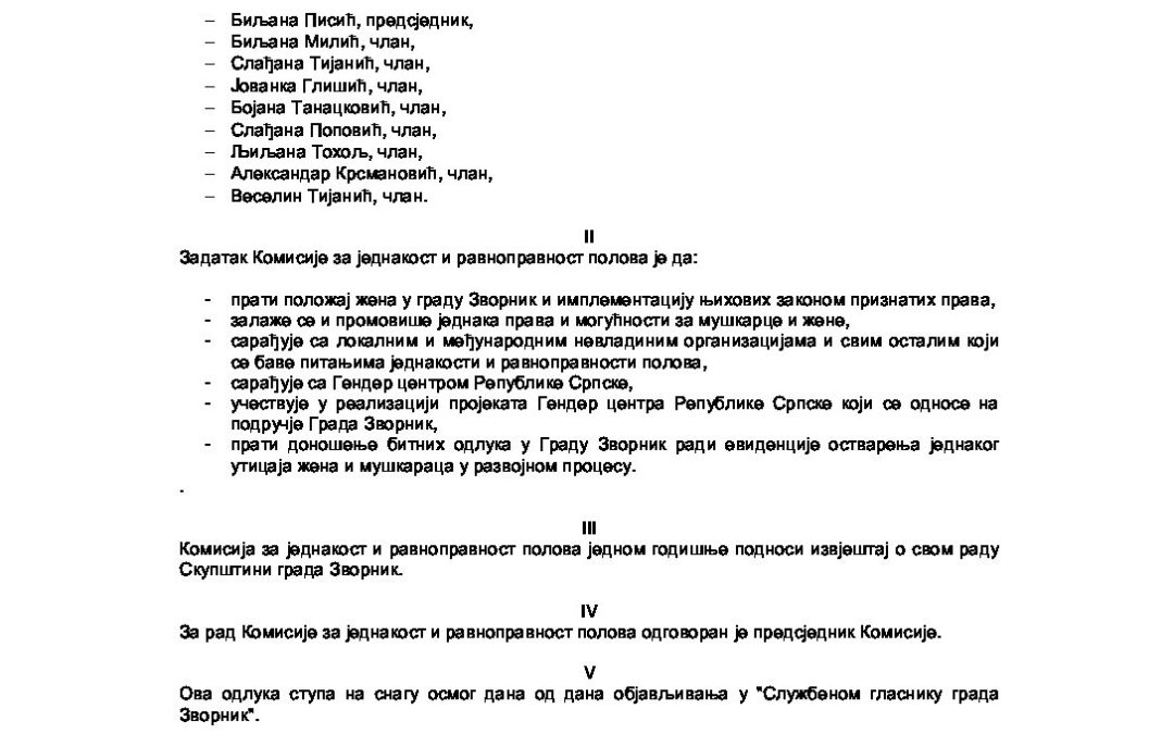 Приједлог Одлуке о именовању Комисије за једнакост и равноправност полова