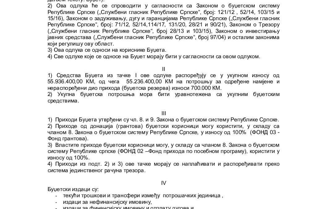 Приједлог Одлуке о извршењу Буџета града Зворник за 2025. годину