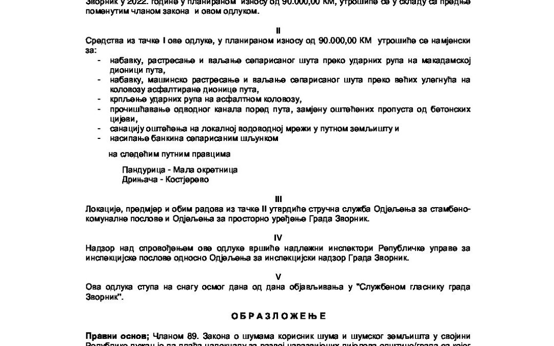 Приједлог Одлуке о кориштењу намјенских средстава остварених по основу накнаде за експлоатацију шума за 2022 годину Feb 17, 2022