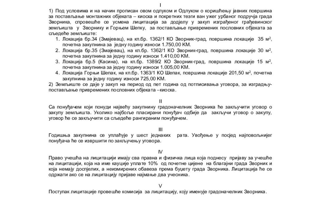 Приједлог Одлуке о спровођењу лицитације за додјелу у закуп јавних површина за постављање привремених пословних објеката јан 24, 2025