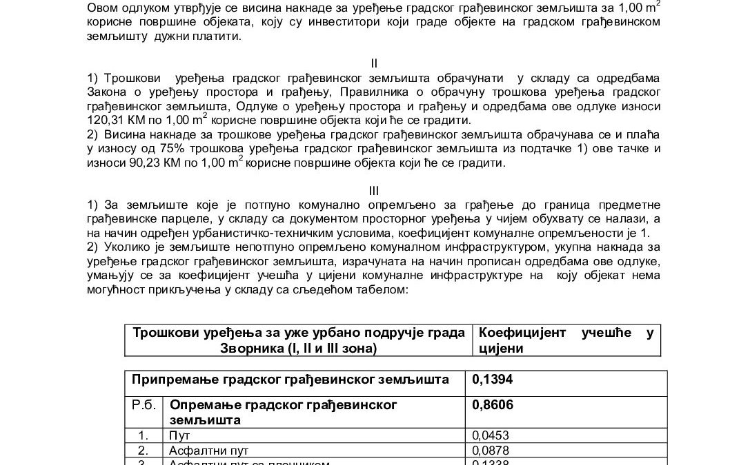 Приједлог Одлуке о утврђивању накнаде за уређење градског грађевинског земљишта за 2024 годину мар 22, 2024