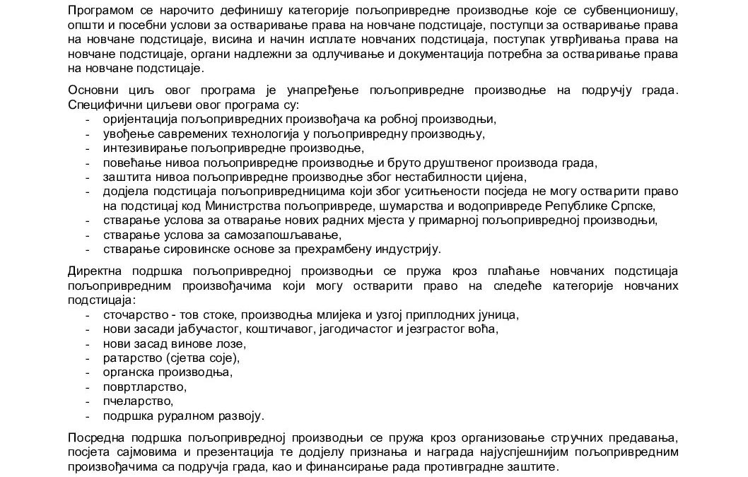 Програм кориштења буџетских средстава за подстицај пољопривредне производње…