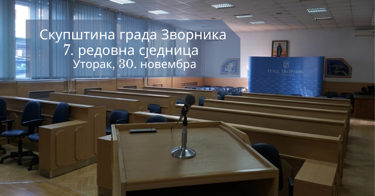 U utorak, 30. novembra, u velikoj sali Gradske uprave Zvornik sa početkom u 10:00 časova biće održana 7. redovna sjednica Skupštine grada Zvornika na kojoj će odbornici razmatrati prijedloge odluka o usvajanju Nacrta rebalansa budžeta grada Zvornika za 2021. godinu, kupovini poslovnog prostora za potrebe JU Centar za socijalni rad, zamjeni zemljišta sa Doo „Fagum novi“ Zvornik, zaštiti izvorišta „Đevanje“, te prijedlog Odluke o izmjeni Odluke o zamjeni zemljišta sa Momčilom Radovićem iz Jardana.