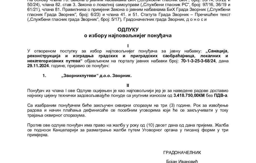 Санација, реконструкција и изградња градских и приградских саобраћајница, локалних и некатегорисаних путева јан 22, 2025