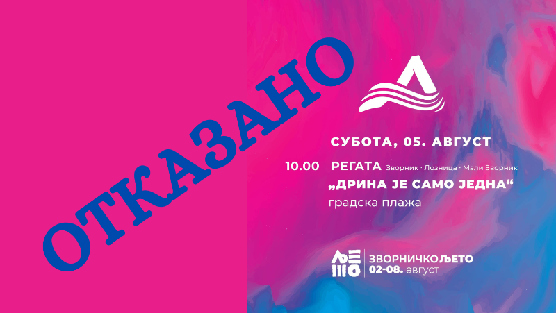 Због најављених временских непогода и безбједносног ризика боравка на води у таквим условима градови Зворник и Лозница отказују овогодишњу дринску регату „Дрина је само једна“, која је била заказана за суботу, 05. август 2023. године.