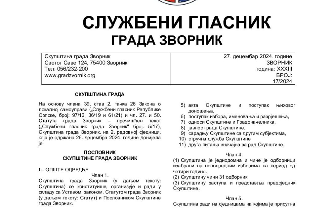 Отворен позив за доставу приједлога за израду Програма рада Скупштине града за 2026. годину