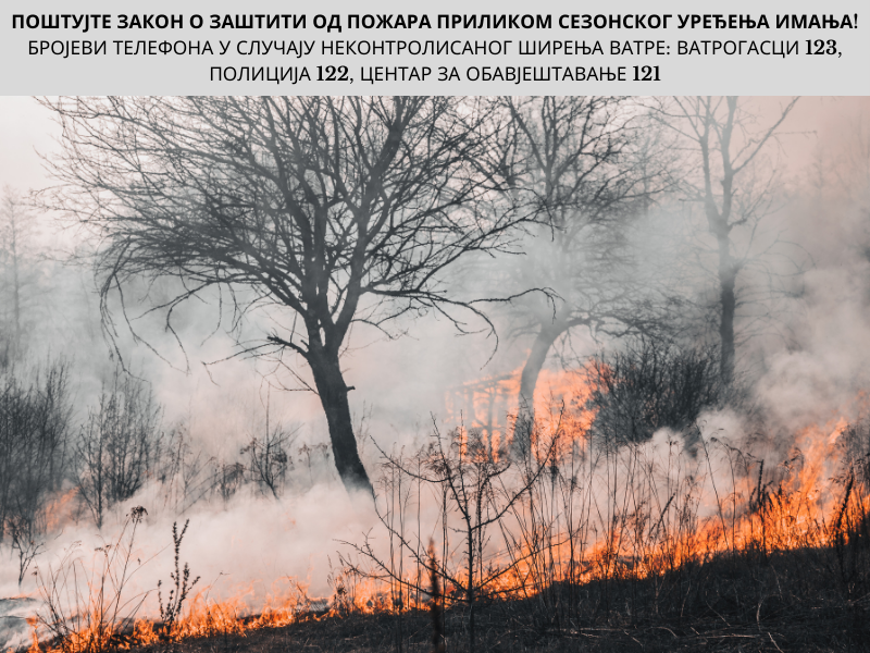 Из тог разлога РУЦЗ позива грађане да спаљивање корова и другог отпада приликом уређења пољопривредног земљишта и имања врше само када су повољне временске прилике на површинама које могу контролисати и уз претходну најаву ватрогасној јединици на број 123.